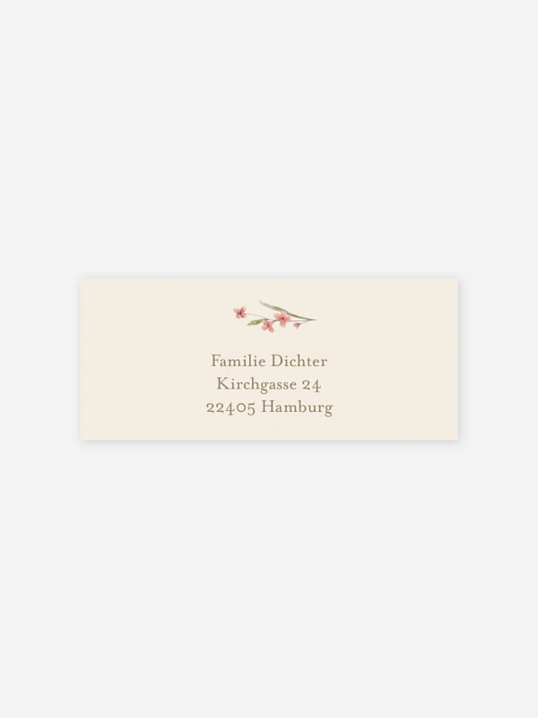Vorgedruckt und versandfertig: Der Aufkleber "Floral Grace" ist mit Ihrer Adresse beschriftet: So geht das Verschicken extraschnell.
