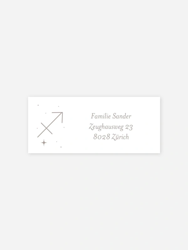 Unsere praktischen Absenderaufkleber im Design "Sternbild Schütze" machen jeden Umschlag zum hübschen Blickfang.