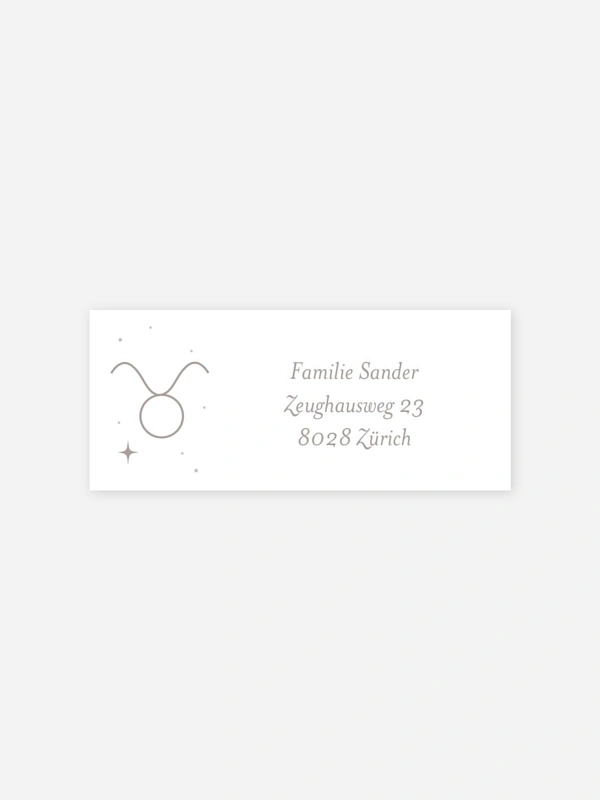 Unsere praktischen Absenderaufkleber im Design "Sternbild Stier" machen jeden Umschlag zum hübschen Blickfang.