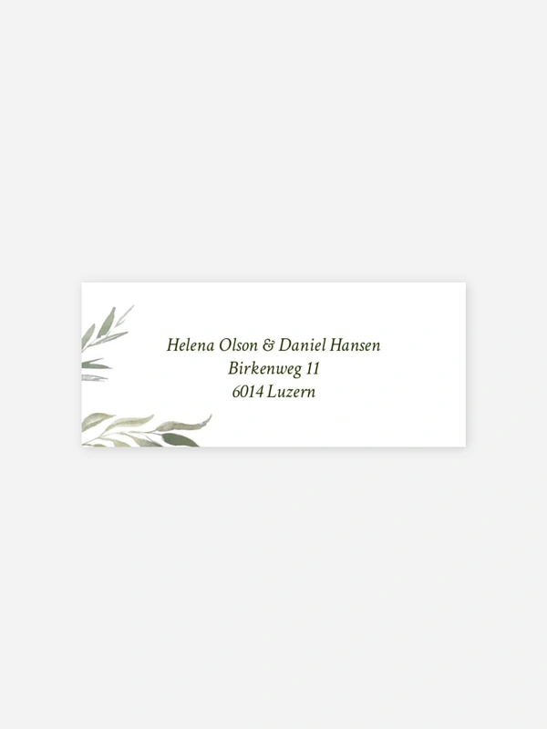Gestalten Sie die selbstklebenden Absenderaufkleber "Botanical Gate" mit Ihrer eigenen Adresse. So sind Ihre Umschläge nicht nur praktisch beschriftet, sondern auch optisch perfekt abgerundet zu Ihrer Hochzeitseinladung.
