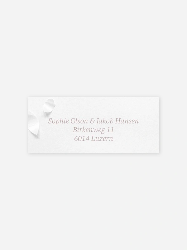 Gestalten Sie die selbstklebenden Absenderaufkleber "Poem on Paper" mit Ihrer eigenen Adresse. So sind Ihre Umschläge nicht nur praktisch beschriftet, sondern auch optisch perfekt abgerundet zu Ihrer Hochzeitseinladung.
