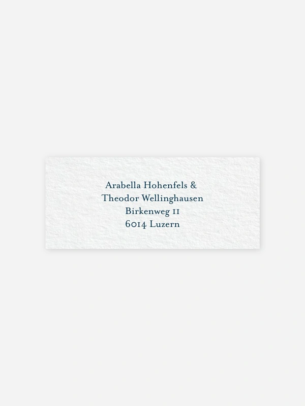 Gestalten Sie die selbstklebenden Absenderaufkleber "Pure Elegance" mit Ihrer eigenen Adresse. So sind Ihre Umschläge nicht nur praktisch beschriftet, sondern auch optisch perfekt abgerundet zu Ihrer Hochzeitseinladung