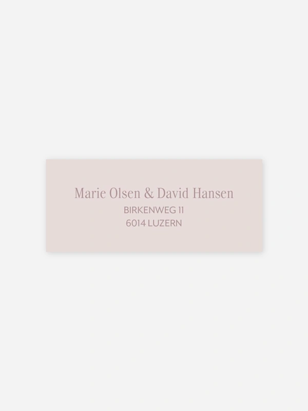 Gestalten Sie die selbstklebenden Absenderaufkleber "Synergie" mit Ihrer eigenen Adresse. So sind Ihre Umschläge nicht nur praktisch beschriftet, sondern auch optisch perfekt abgerundet zu Ihrer Hochzeitseinladung