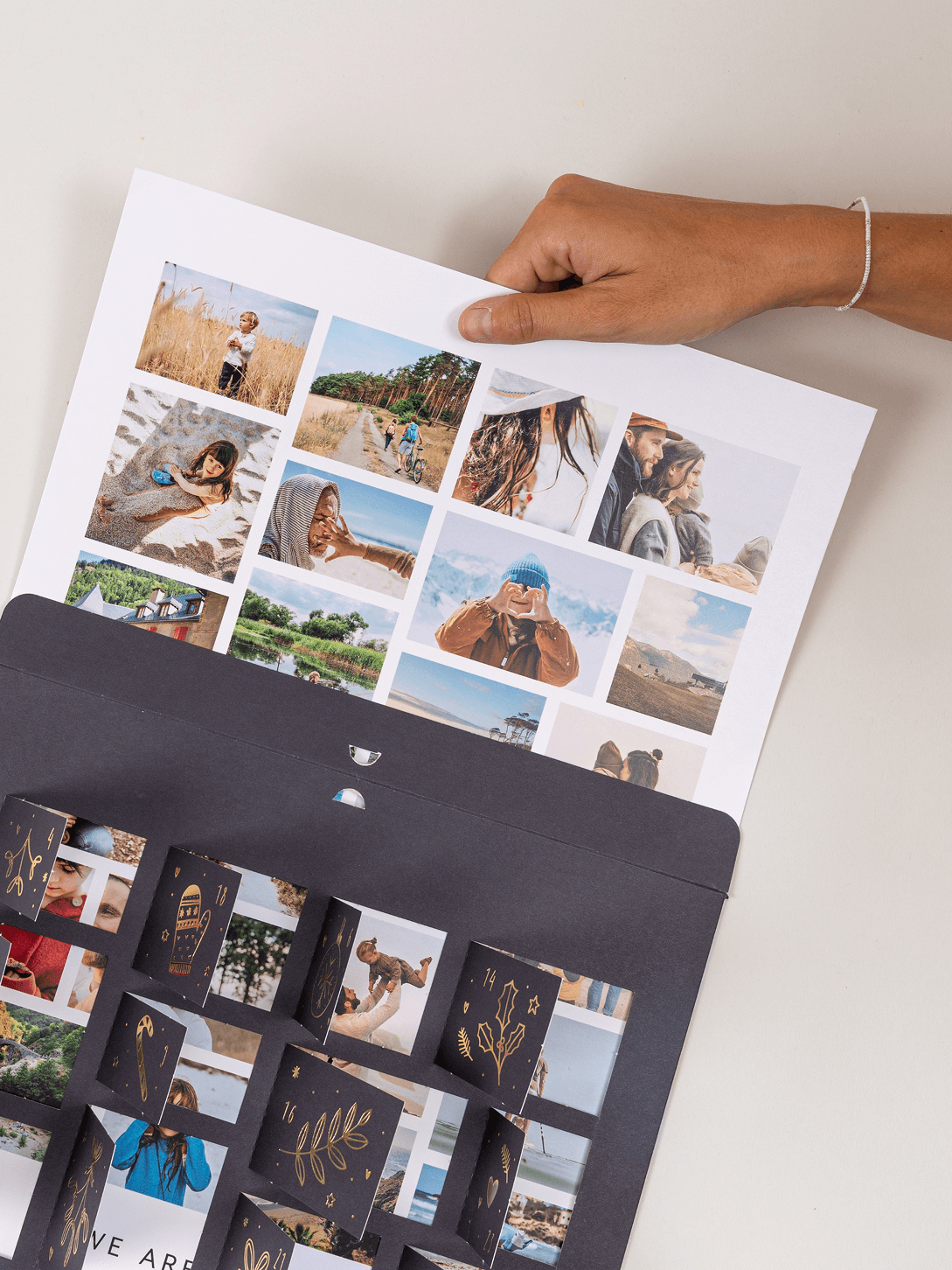 Zauber 24 Tage lang ein Lächeln auf das Gesicht deiner Liebsten. Mit Fotos, die die schönsten gemeinsamen Momente einfangen. So ist die Vorfreude auf Weihnachten etwas ganz Persönliches. Und danach? Wird der Kalender einfach zum Fotoposter, das man als Erinnerung aufbewahren oder aufhängen kann.