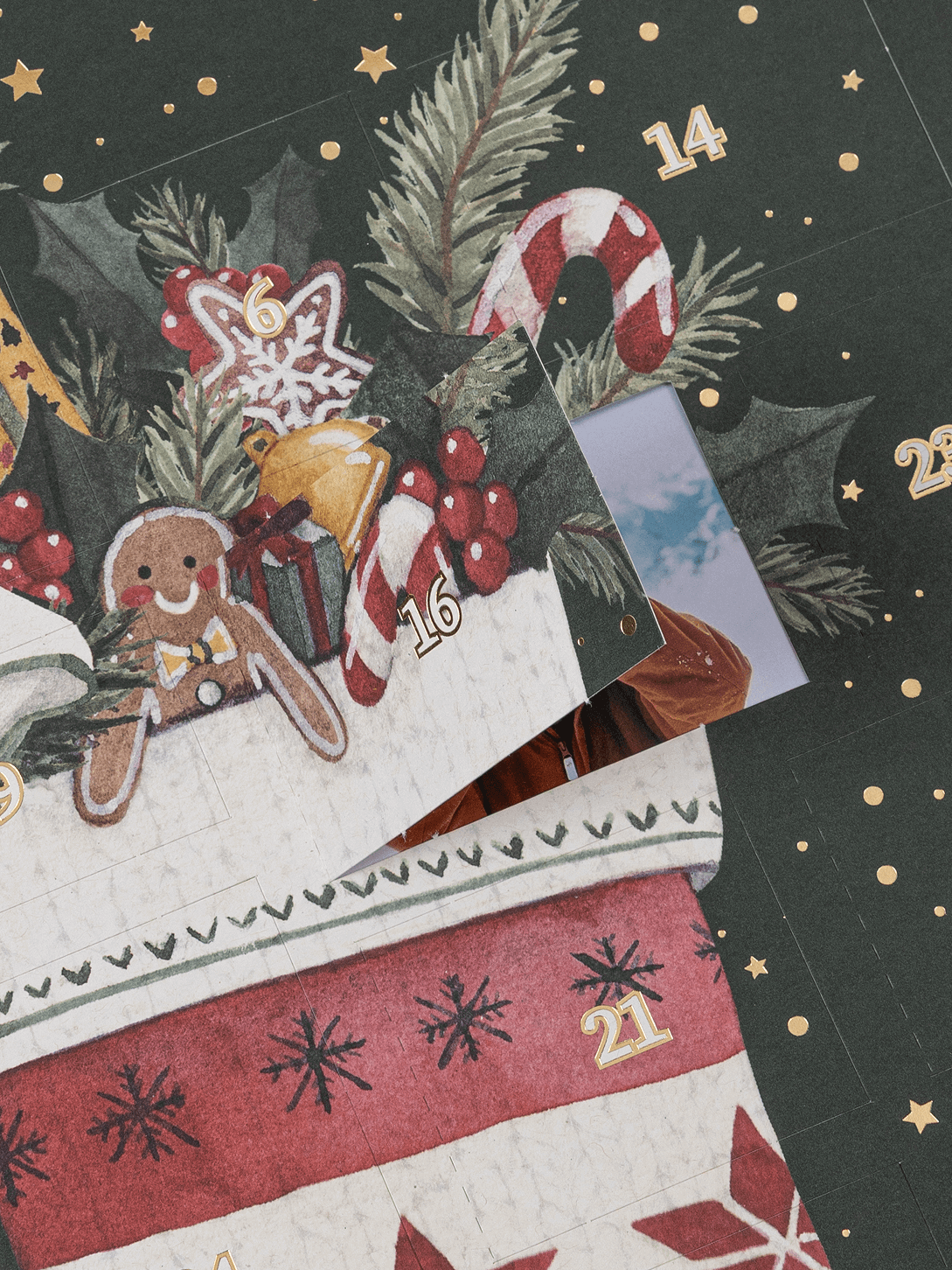 Mit liebevoll gestalteten Illustrationen, feinen Golddetails und einem edlen Druck auf hochwertigem Papier wird jeder deiner persönlichen Adventskalender zu einem echten Hingucker. Deine Fotos kommen auf dem Poster brillant zur Geltung – gestochen scharf, mit kräftigen Farben und in originalgetreuer Qualität.