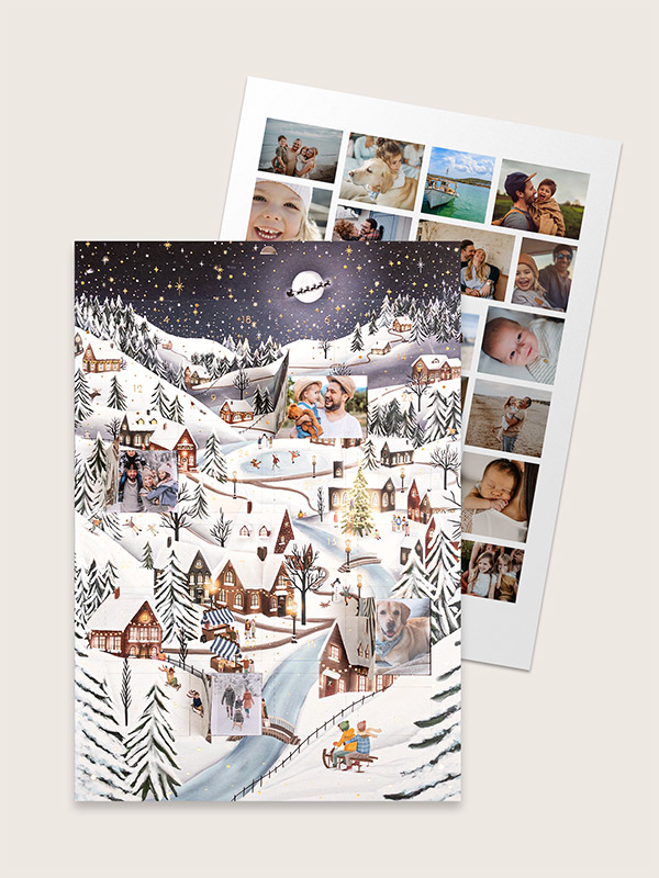 Mit unserem Adventskalender "Winterfreude" wird die Adventszeit zu einer täglichen Entdeckungsreise für die ganze Familie. Die liebevoll von Hand gezeichnete Winterlandschaft lädt zum Träumen ein und birgt hinter jedem Türchen deine liebsten Fotomomente des Jahres. Zarte goldene Details funkeln im Licht und machen den Kalender zu einem ganz besonderen Hingucker, der die Wartezeit auf Weihnachten verschönert. Gestalte jetzt diesen persönlichen Adventskalender ganz einfach online und teile jeden Tag eine kleine Freude.