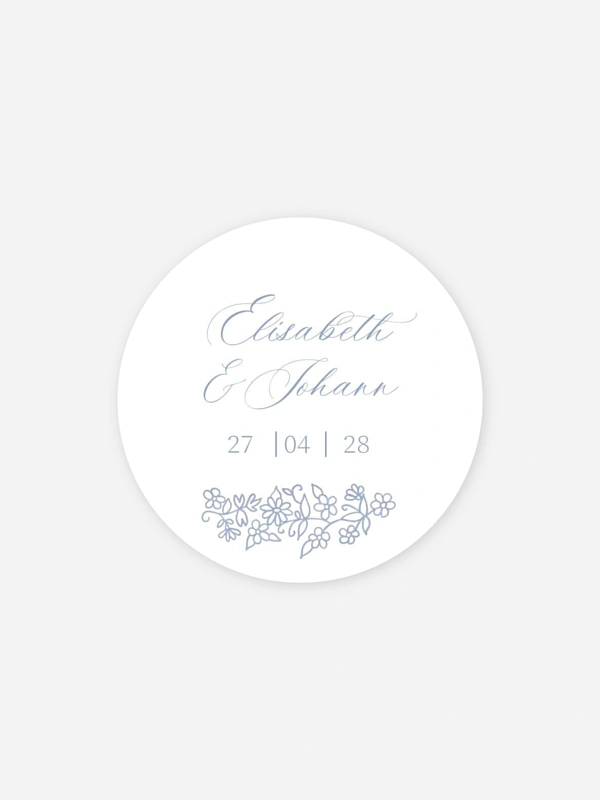Personalisieren Sie die Hochzeitssticker "Zwischen Blüten" mit Ihren Namen und verschönern Sie damit die Gastgeschenke für Ihre Lieben.
