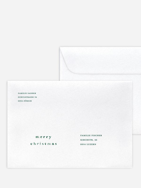 Machen Sie den Versand Ihrer Briefe und Karten so einfach und stilvoll wie nie zuvor mit unseren bedruckten, personalisierbaren Umschlägen. Diese eleganten Umschläge sind nicht nur eine perfekte Ergänzung zu unserer gesamten Designserie "Vintage Tanne", sondern auch eine praktische Lösung, um Ihre Postsendungen aufzuwerten.