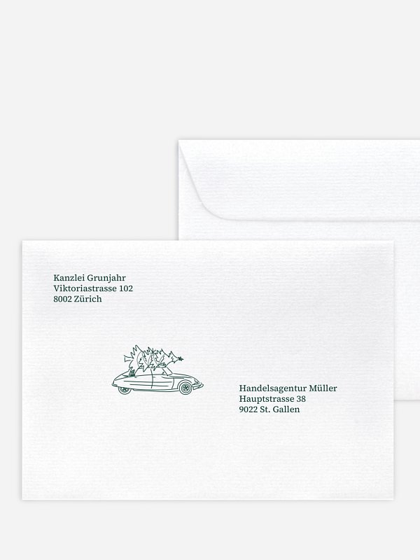 Perfekte Festtagspost beginnt beim Kuvert: Die bedruckten Briefumschläge "Vintage Car" sind die edelste Verpackung für Ihre Weihnachtskarten.