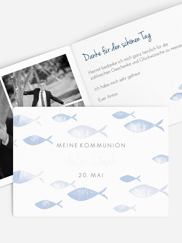 Danke für eine wunderschöne Kommunionsfeier. Sagen Sie es mit den Dankeskarten „Fischschwarm“!