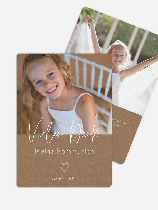 Ein ganz besonderer Kommunionsgottesdienst und ein schönes Fest mit Freunden und Familie: Wählen Sie ein Foto aus, das Bände spricht, und versenden Sie persönliche Worte mit der modernen Danksagung "Symbols of Love".