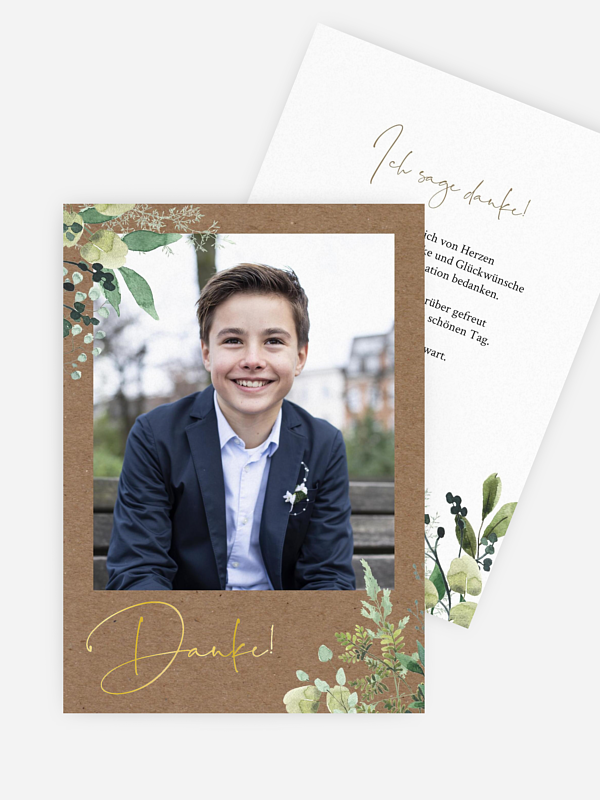 In der Dankeskarte "Rustic Green Magic" finden die schönsten Bilder der Konfirmation einen Platz und alle Gäste werden sich mit Sicherheit über diese schöne Aufmerksamkeit freuen.