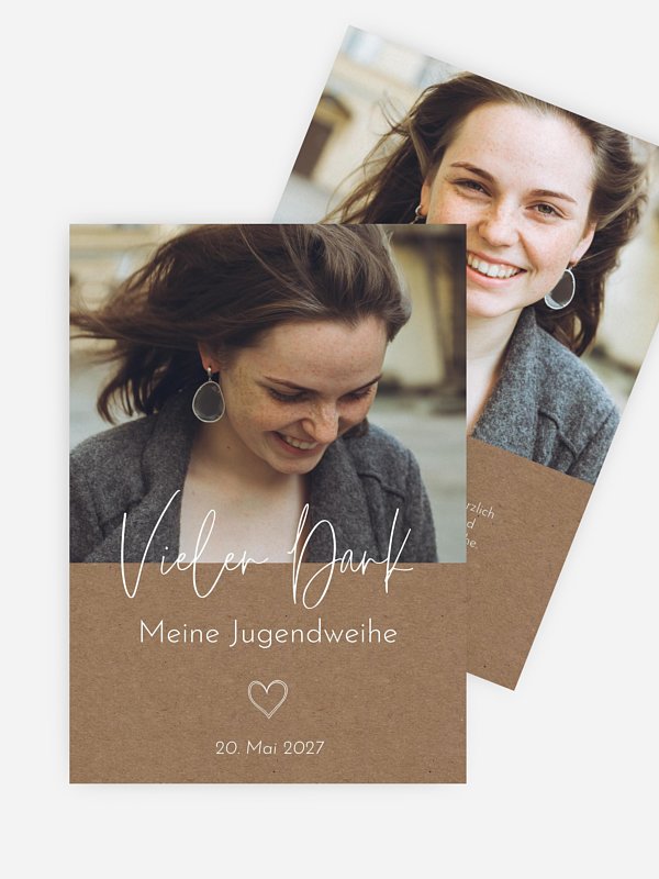 Der perfekte Abschluss eines besonderen Tages: Nach der Jugendweihe können Sie mit der Danksagung "Symbols of Love" allen Angehörigen und Freunden einen Fotogruß mit persönlichen Worten des Dankes zusenden.