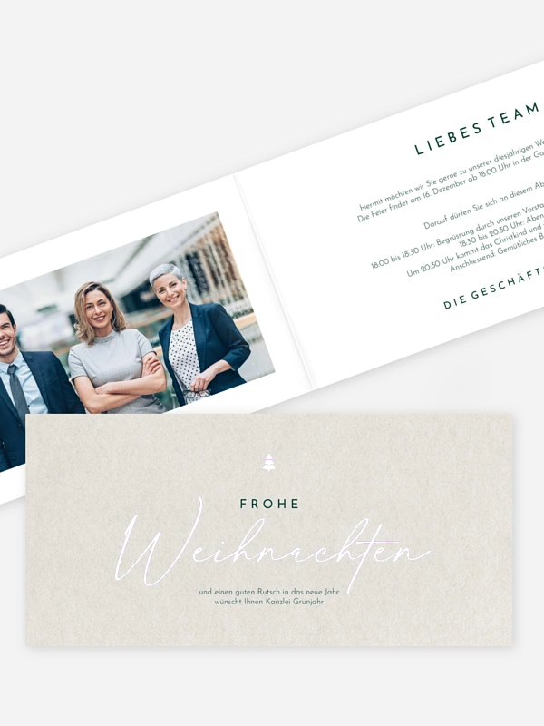 Reduziertes Design und minimalistische Typografie: Einen modernen Rahmen für Ihre Einladung zur Weihnachtsfeier bietet die Karte "Edles Fest".