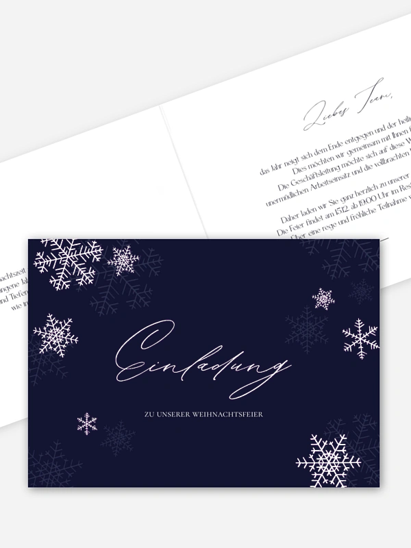 Mit der Weihnachtskarte "Joyful Snowflake" laden Sie nicht nur stilvoll zur Weihnachtsfeier ein – Sie schenken zugleich einen Hauch festlicher Vorfreude. Das winterliche Design sorgt schon beim Öffnen der Post für weihnachtliche Stimmung. So beginnt das Feiern schon mit der Einladung.