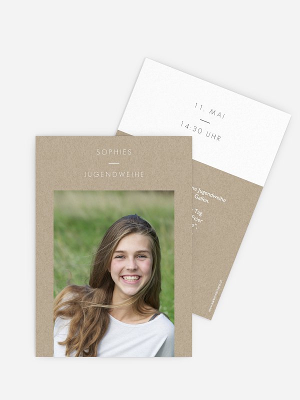 Die elegante Einladung zur Jugendweihe "Mein Weg" ist perfekt, um ein wunderschönes Foto zum absoluten Mittelpunkt der Einladung zu machen. Der dezente Schriftzug komplementiert das klassische Design.