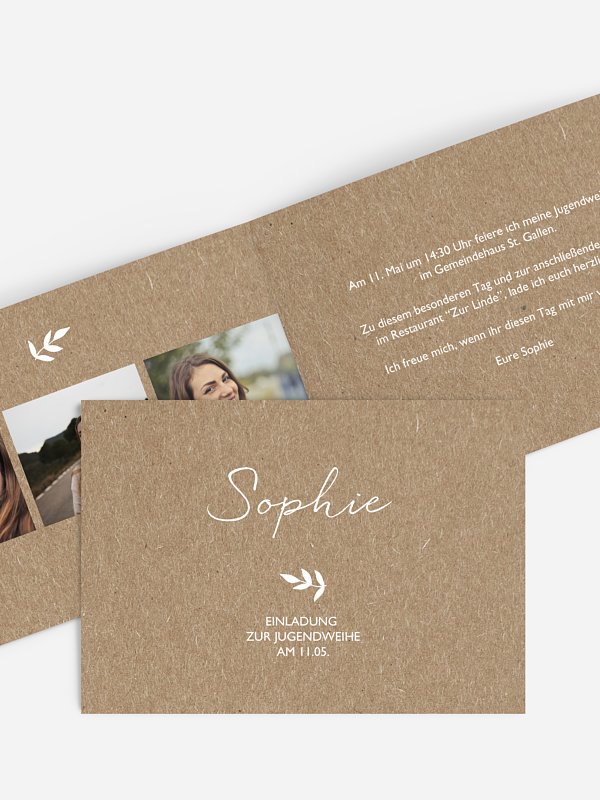 Einladung Jugendweihe Olivienzweig Kraftpapier