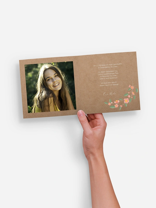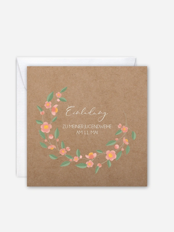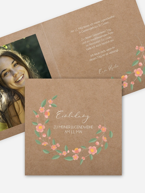 Passend zur Jahreszeit der Jugendweihe lädt die Karte "Springflower" frühlingsfrisch zum großen Tag Ihres Kindes ein.