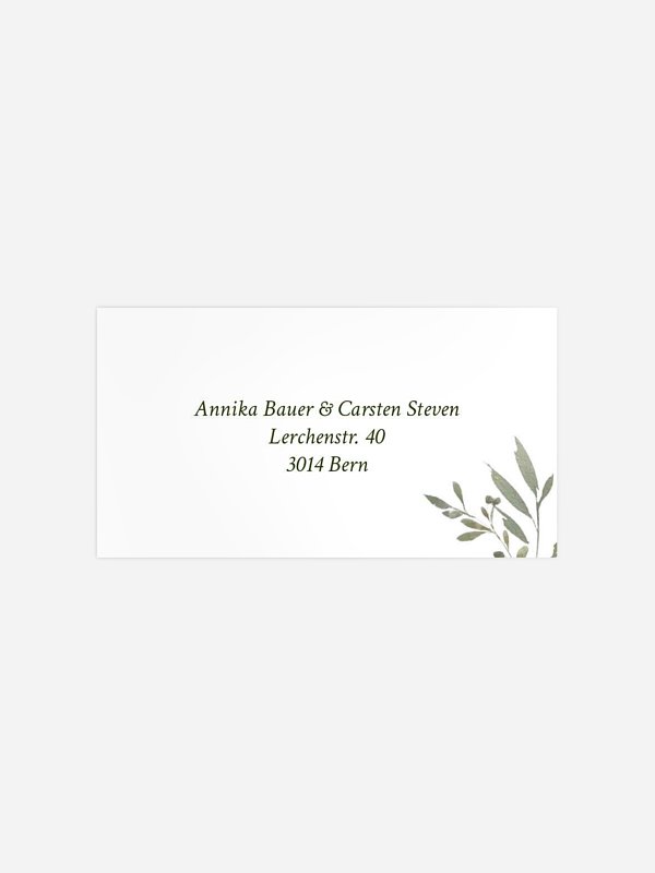Personalisieren Sie die selbstklebenden Empfängeraufkleber "Botanical Gate" mit den Adressen Ihrer Gäste und bringen Sie sie direkt auf den Umschlägen an – schnell, ordentlich und stilvoll.