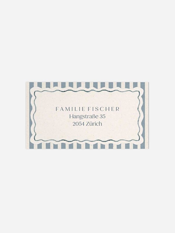 Die selbstklebenden Empfängeraufkleber "Little Stripes" passen perfekt zur gleichnamigen Einladung und erspart dir das Beschriften der Kuverts per Hand.