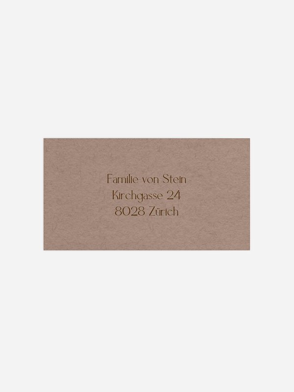 Personalisieren Sie die selbstklebenden Empfängeraufkleber "Pure Initials" mit den Adressen Ihrer Gäste und bringen Sie sie direkt auf den Umschlägen an – schnell, ordentlich und stilvoll.