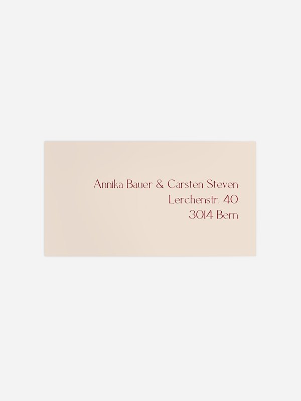Personalisieren Sie die selbstklebenden Empfängeraufkleber "Traumtag" mit den Adressen Ihrer Gäste und bringen Sie sie direkt auf den Umschlägen an – schnell, ordentlich und stilvoll.
