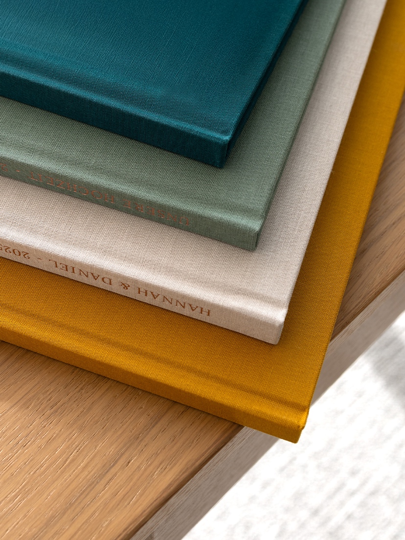 Unser Team hat sorgfältig erstklassige Stoffe ausgewählt, um die Einbände der Fotobücher zu veredeln. So bleibt Ihr Fotobuch über viele Jahre hinweg schön und beständig.
