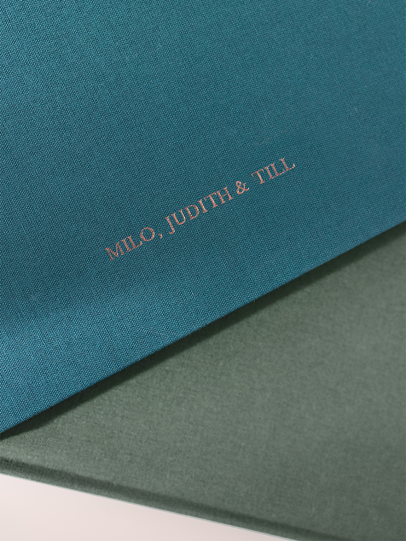 Jedes Fotobuch mit Stoffeinband wird von unseren Druckexperten von Hand veredelt. Mit präziser Heißfolienprägung wird der personalisierte Titel Buchstabe für Buchstabe auf dem Einband und dem Rücken aufgetragen – für ein luxuriöses Finish.