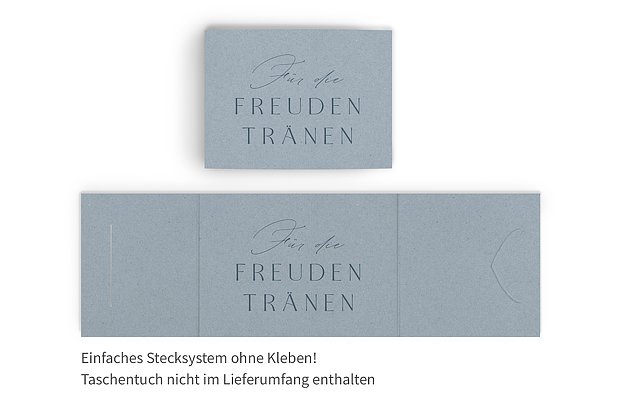 Gestalten Sie die hübschen Taschentuchhüllen "Big Date" individuell – perfekt für Freudentränen und kleine emotionale Momente während Ihrer Zeremonie.