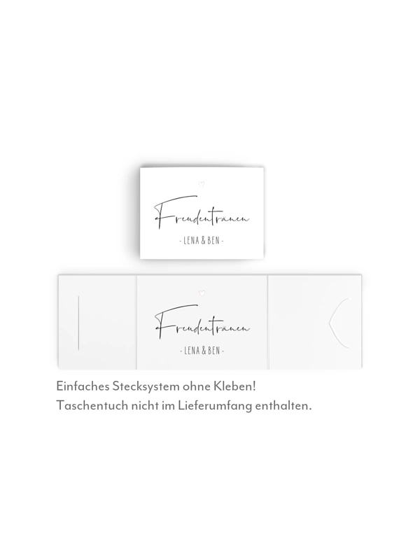Die Banderolen für Freudentränen-Taschentücher "Glücksfotos" helfen Ihren Gästen charmant bei den emotionalen Momenten während Ihrer Trauung.