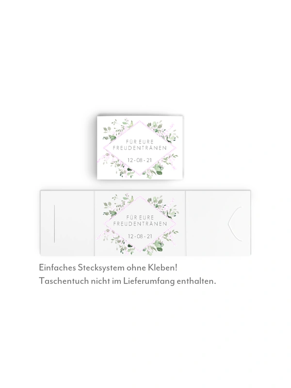 Für die Freudentränen während Ihrer Trauung: die Banderolen mit Veredelung für Taschentücher aus der Serie "Gold and Green".