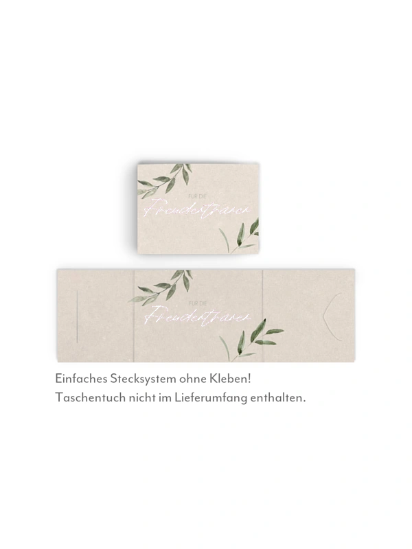 Gestalten Sie die hübschen Taschentuchhüllen "Green Dream" individuell – perfekt für Freudentränen und kleine emotionale Momente während Ihrer Zeremonie.