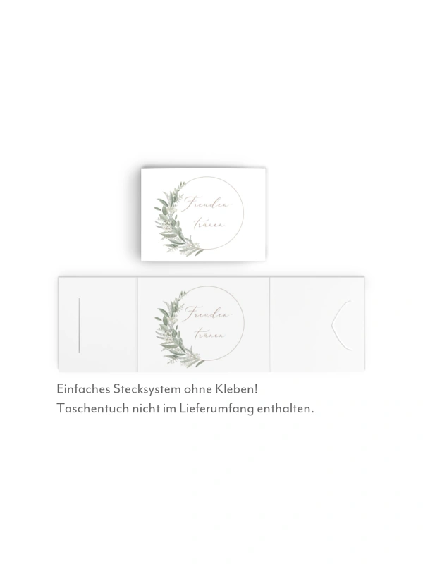 Sie planen eine Trauung im Freien oder lieben einfach natürliches Grün? Dann legen Sie Ihren Lieben für die Freudentränen Taschentücher mit der passenden Banderole im Design "Soft Sage" aus.