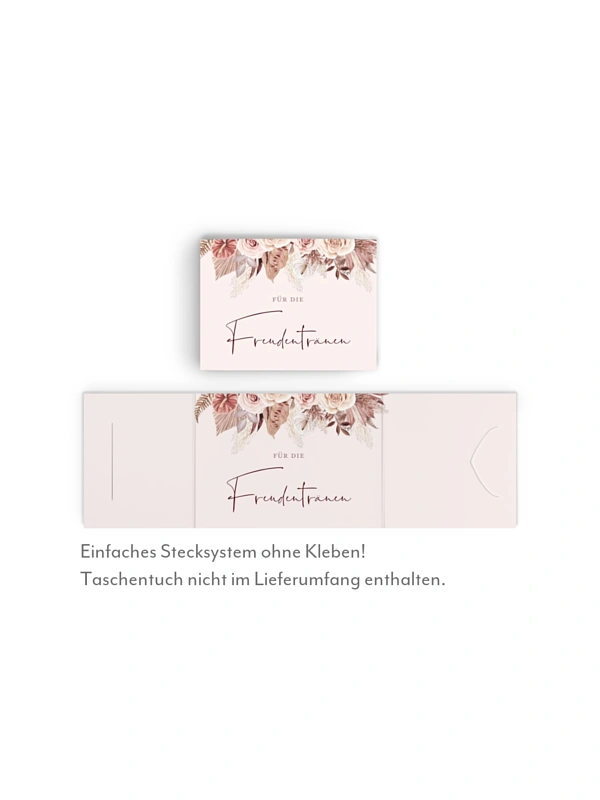 Die Banderolen für Freudentränen-Taschentücher im Design "Terracotta Love" können für jeden Gast bei der Trauung ausgelegt werden.