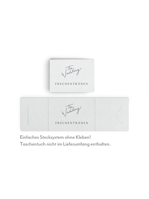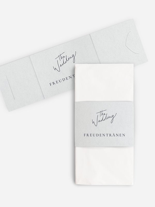 Gestalten Sie die hübschen Taschentuchhüllen "Zarte Liebe" individuell – perfekt für Freudentränen und kleine emotionale Momente während Ihrer Zeremonie.