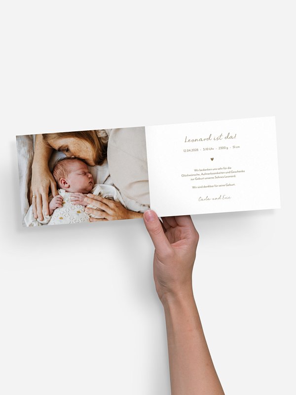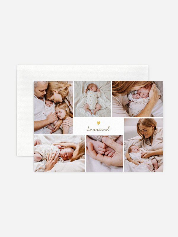 Für alle, die sich bei all den zauberhaften Fotos ihres Babys nicht entscheiden können. Auf diesem Design der Geburtskarte "Beautiful Day" haben extra viele Bilder Platz.