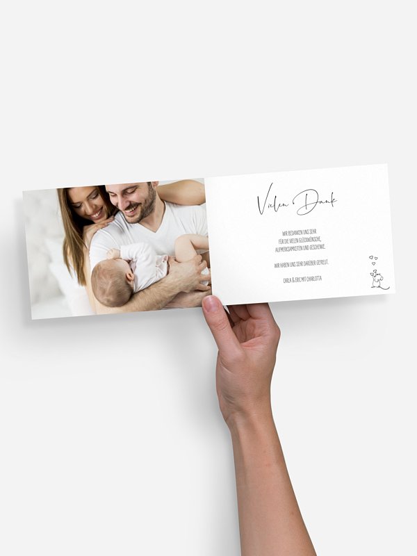 Zusammen messen, zusammen wiegen, zusammen die Zeit nachsehen. Die süße Maus und der niedliche Elefant auf dieser Karte machen alles zusammen um so die Daten ihres Babys perfekt zu untermalen.