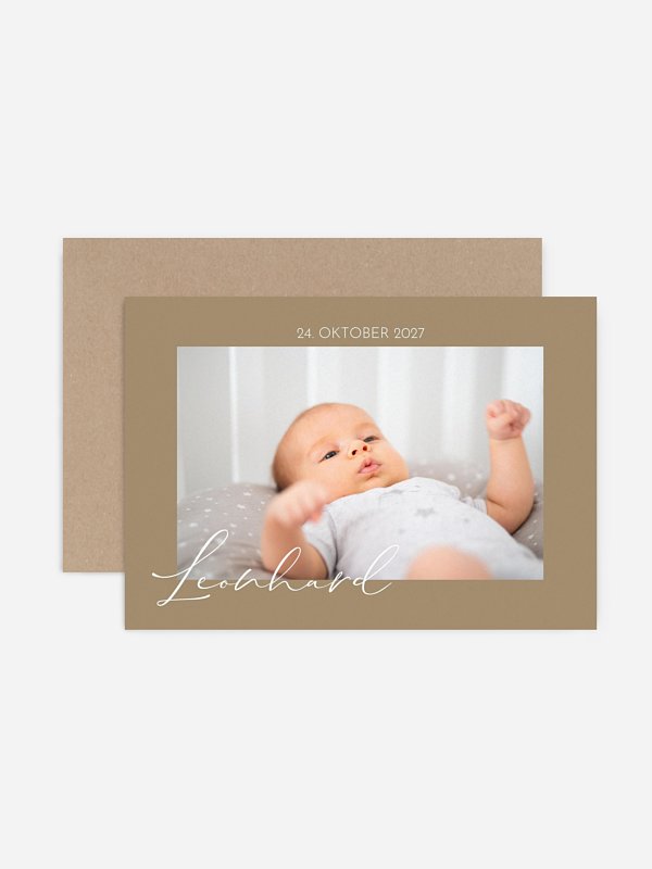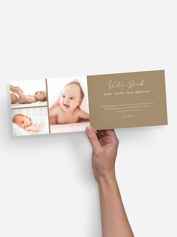 Teilen Sie ihr Glück mit Freunden und Verwandten! Die schlichte Geburtskarte "Nur Du" bietet Platz für große Fotos Ihres Babys.