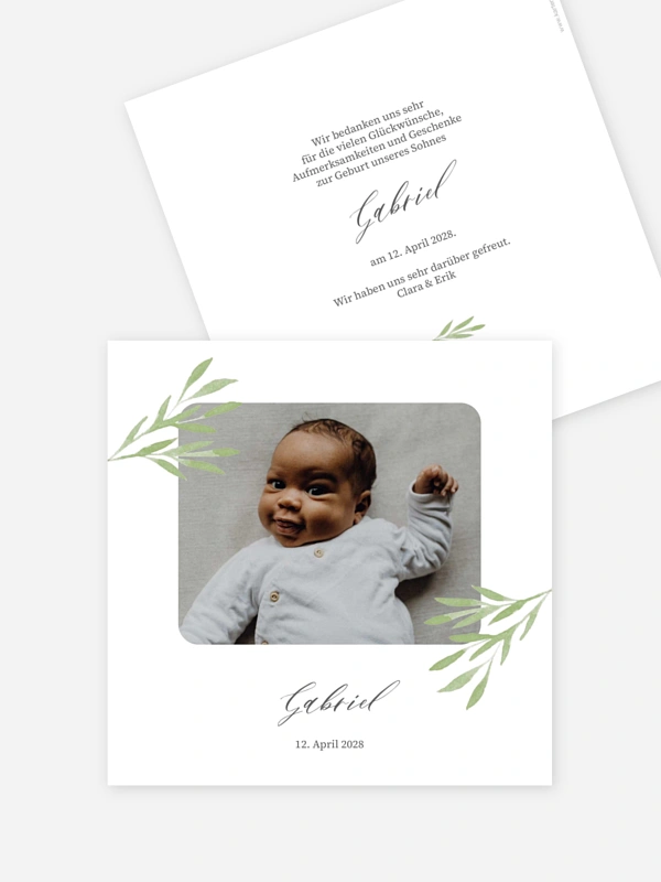 Die Geburtskarte "Zartes Zweigchen" fängt das grosse Glück eures kleinen Wunders mit liebevoll gestalteten Wasserfarben-Details ganz natürlich ein. Es ist ein besonderer Moment, die Ankunft eures Schatzes mit dieser Karte zu verkünden und eure Freude mit den Lieblingsmenschen zu teilen.