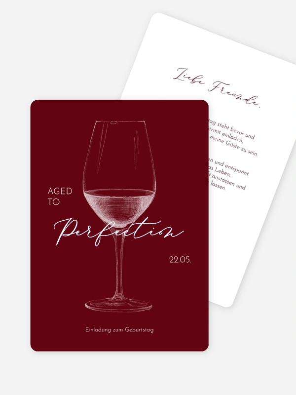 Mit der Geburtstagseinladung "Aged to Perfection" feierst du dein neues Lebensjahr mit Stil, Gelassenheit und einem feinen Augenzwinkern. Die handgezeichneten Gläser stehen sinnbildlich für gute Gespräche, geteilte Momente und alles, was mit den Jahren einfach schöner wird – perfekt für eine Einladung zum Geburtstag mit Persönlichkeit. Diese Geburtstagseinladung passt wunderbar zu einem entspannten Fest im kleinen oder großen Kreis. Gestalte sie ganz einfach im Tool und lade deine Lieblingsmenschen mit wenigen Klicks ein.