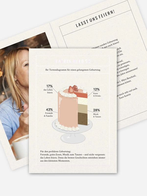 Die Einladung 50. Geburtstag "Birthday Chart" bringt auf den Punkt, was diesen Tag ausmacht. Sie zeigt, wie sich ein runder Geburtstag anfühlt: gemeinsam lachen, gut essen, tanzen und einfach zusammen sein. Deine Einladung zum Geburtstag wird so zu einer kleinen Vorschau auf das Fest selbst. Gestalten kannst du sie ganz unkompliziert im Gestaltungs-Tool – damit am Ende alles stimmig ist, vom ersten Eindruck bis zum großen Tag.