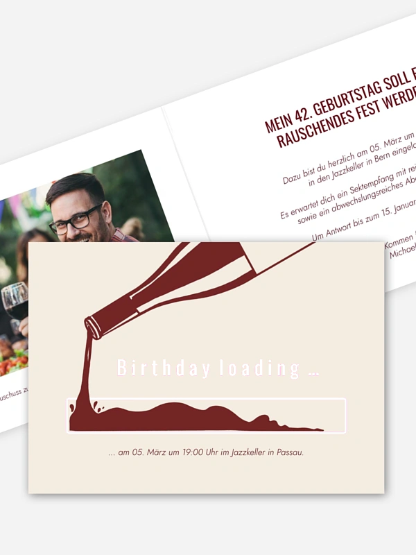 Mit der Geburtstagseinladung "Birthday Loading" wächst die Vorfreude Seite für Seite. Sie fühlt sich an wie ein leiser Countdown auf einen Abend, der geteilt werden will – mit guten Gesprächen, Zeit füreinander und deinem Anlass im Mittelpunkt. Deine Einladung zum Geburtstag gestaltest du ganz einfach im Gestaltungs-Tool und machst sie Schritt für Schritt zu deiner eigenen. Dank schneller Lieferung ist alles bereit, wenn aus Vorfreude Wirklichkeit wird.