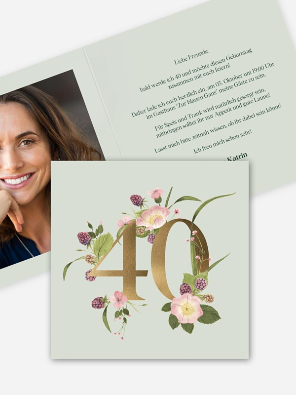 Blumig, zart und edel: Die Einladungskarte "Gartenparty" begeistert mit aufwendig gezeichneten Blüten und genug Platz für Ihr schönstes Foto.