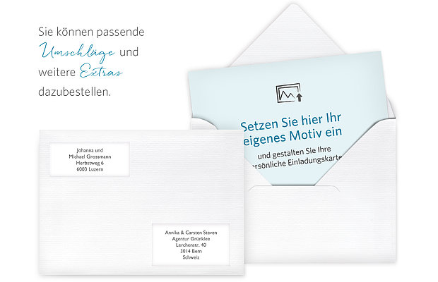 Sie entscheiden, was Sie auf der Vorderseite der Einladungskarte "Gestaltungsfreiheit" drucken möchten: Ihr individuell gewähltes Motiv macht diese Karte zu etwas ganz besonderem.