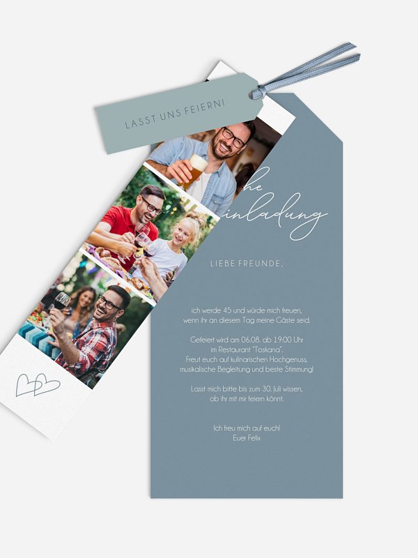 Damit jeder Gast gleich weiß, was in Kürze gefeiert werden wird: Die Geburtstagseinladung "Herzliche Einladung" setzt den Grund für Ihre Geburtstagsfeier gebührend und designstark in Szene.