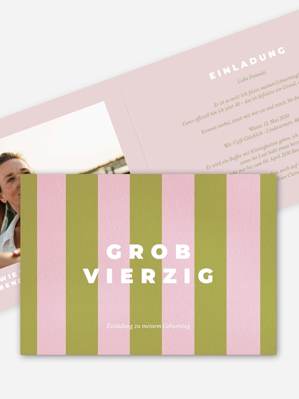 Mit der Einladung zum 40. Geburtstag "Knallbunt" darf gefeiert werden, was zählt: das Leben, die Menschen und all die Geschichten dazwischen. Klar im Ausdruck und voller Energie lädt sie deine Lieblingsmenschen dazu ein, diesen besonderen Geburtstag gemeinsam zu verbringen. Deine Einladung zum Geburtstag gestaltest du ganz einfach im Gestaltungs-Tool und machst sie Schritt für Schritt zu deiner eigenen. So fühlt sich Einladen leicht an – und genau richtig für diesen Moment.