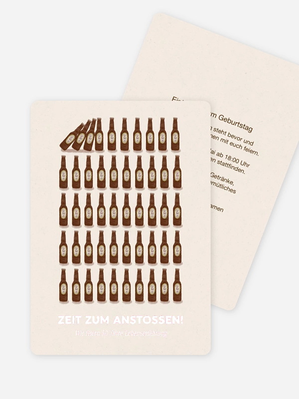 Mit der Einladung zum 40. Geburtstag "Zeit zum anstossen" lädst du deine Lieblingsmenschen mit einem Augenzwinkern zu einem Abend voller Geschichten, Lachen und gemeinsamer Erinnerungen ein. Die Geburtstagseinladung macht sofort klar, worum es geht – gute Gespräche, volle Gläser und ein Abend unter Lieblingsmenschen. Du kannst die Einladung ganz einfach im Gestaltungs-Tool anpassen – unkompliziert, persönlich und mit viel Herz, dazu kommt sie dank schneller Lieferung bald bei dir an. Jetzt deine Einladung zum 40. Geburtstag gestalten und den ersten Anstoss geben.