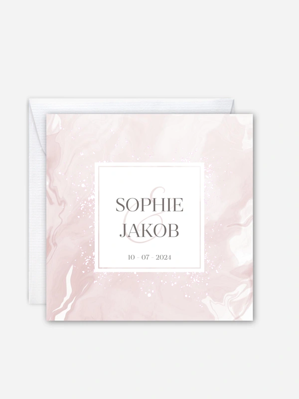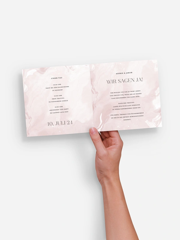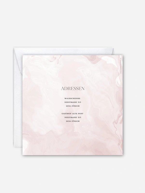 Wunderschöne zarte Farbverläufe auf der Hochzeitseinladung "Abstract Rosé" setzen Ihre Namen perfekt ins Szene. Auf der Innenseite untermalen sie dezent Ihre wichtigsten Infos.