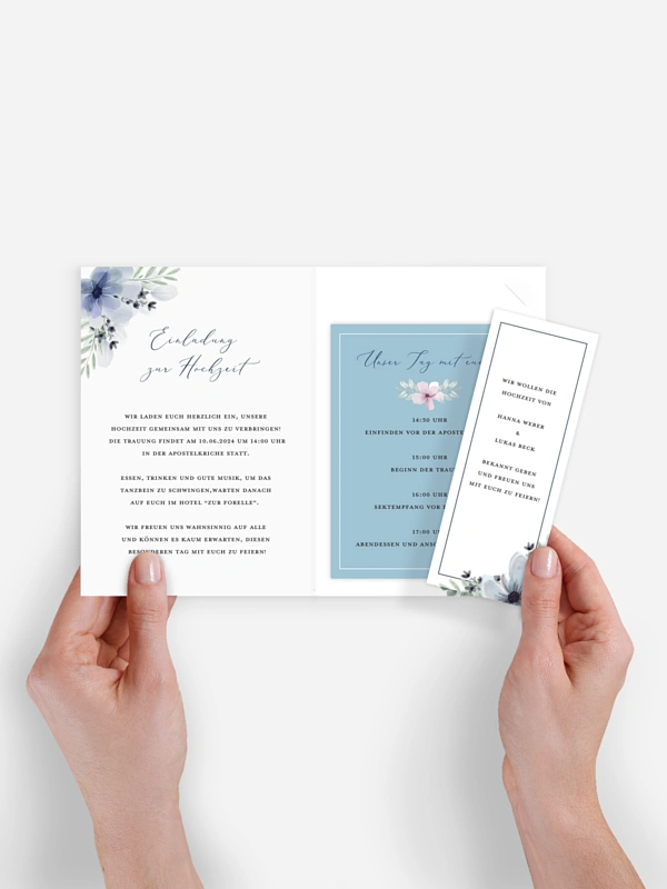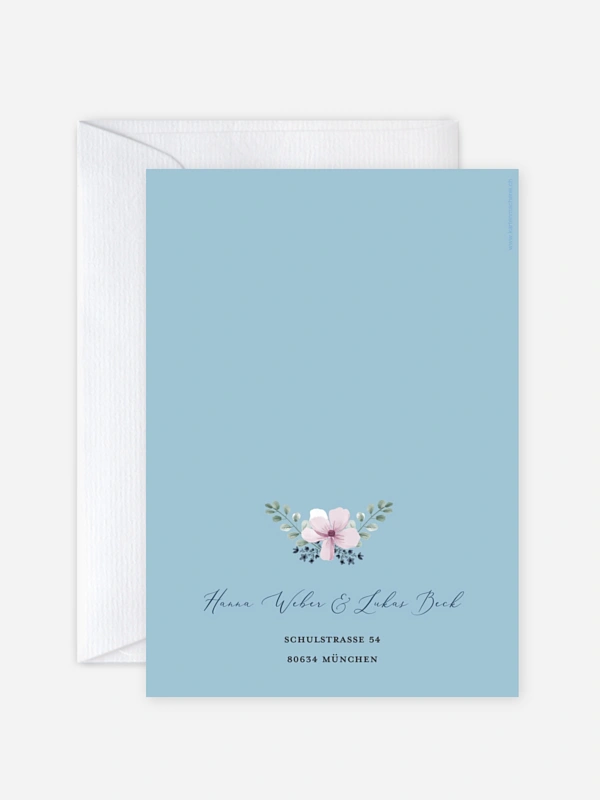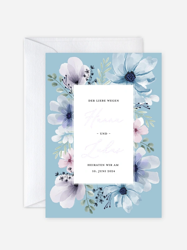 Blau ist die Hochzeitstrendfarbe in diesem Jahr. Mit der Einladung "Blue Love" setzen Sie das richtige Statement.