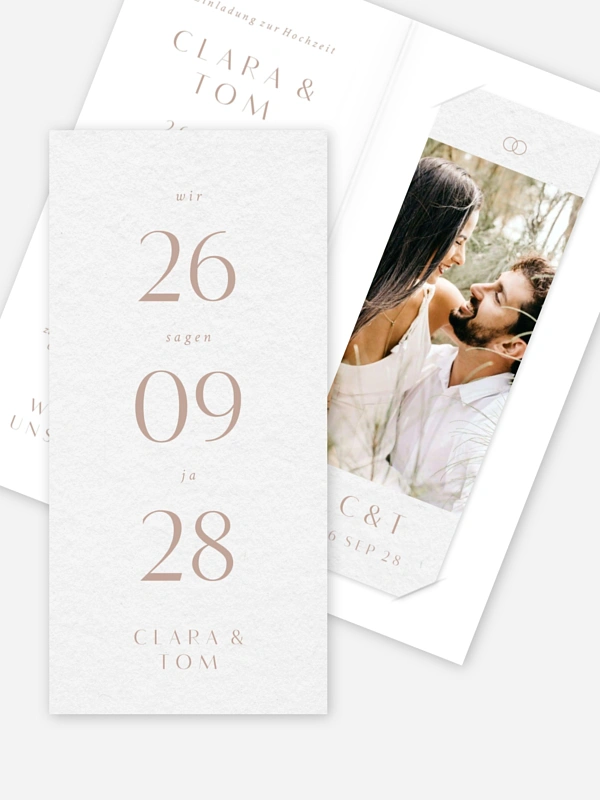 Die wunderschöne Hochzeitseinladung "Bold Simplicity" lädt Ihre Gäste besonders edel und modern ein.